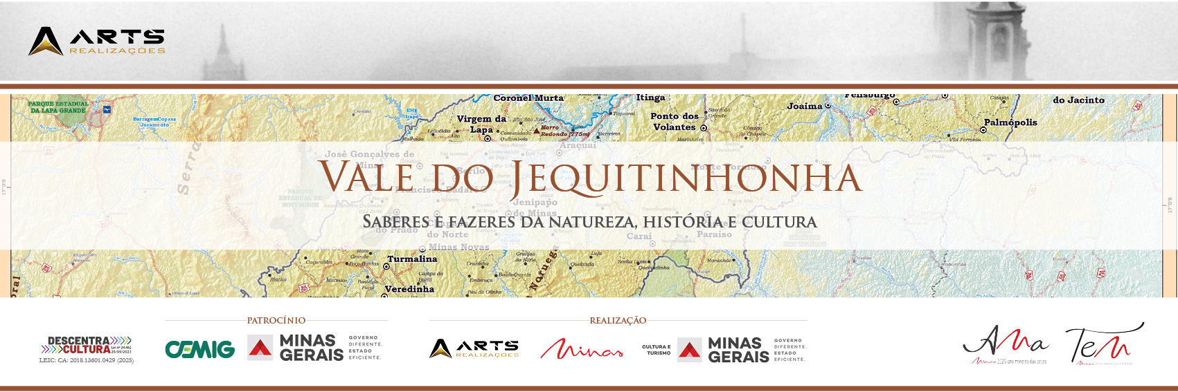 Vale do Jequitinhonha: Saberes e fazeres da natureza, história e cultura, que é bilíngue (português e inglês), contou com o patrocínio exclusivo da Cemig, por meio da Lei Estadual de Incentivo à Cultura de Minas Gerais, e com o apoio institucional da Secretaria de Estado de Cultura e Turismo de Minas Gerais (Secult-MG). A publicação também contou com a parceria dos circuitos turísticos Rota dos Diamantes, Circuito das Pedras Preciosas, Circuito Lago do Irapé e Circuito Turístico dos Vales do Jequitinhonha e Mucuri, refletindo o esforço coletivo de valorização e integração cultural e territorial.